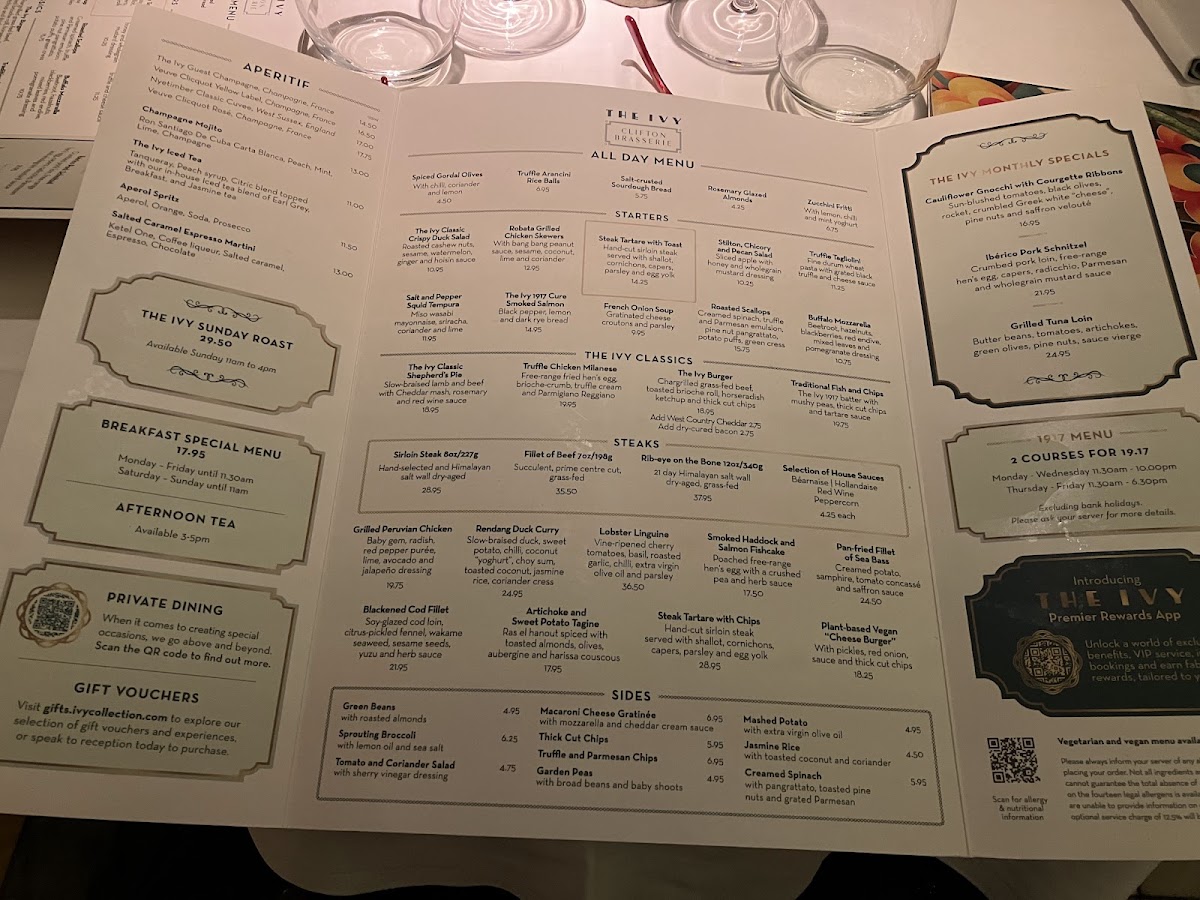 The Ivy Clifton Brasserie Menu (2025 Update)